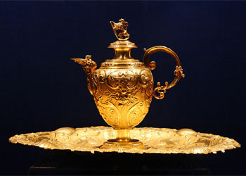 Odnalezione przedmioty to między innymi: 4 bransolety, 6 łańcuchów, 4 pierścienie, 16 guzów do żupana, 51 pereł, misa z dzbanem służąca do mycia rąk (foto), kufel, 2 pary świeczników oraz nożyce do objaśniania świec. Są one wykonane ze złota i srebra i są ozdobione kamieniami szlachetnymi: diamentami, rubinami, szmaragdami, szafirami i turkusami. Wszystkie wyroby ze złota ważą łącznie ponad 2 kg, a srebrne to ok. 5 kg. kruszcu.